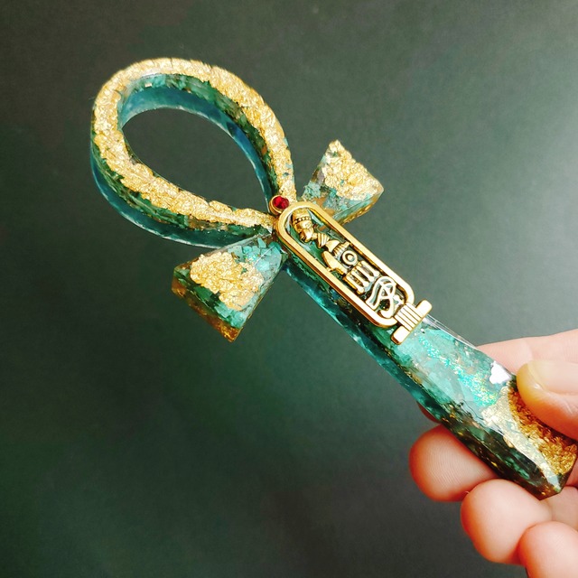 アンクのオルゴナイトです。このままワンドのように使ったり飾ったり また革ひも付き ですのでペンダントとしてもお使いいただけます。(11cm×5cm) 洋金箔でエジプトの象徴である黄金の輝きを表現し エジプトの女神ネフェルティティの金属パーツには、エジプトの文化や神聖なる象徴が込められています。そのエネルギーが、身につける方々に幸運と愛をもたらし、第3の目が活性化していくでしょう。 中には「賢者の石」『ソロモン王の石』『イスラエルの青い涙』と呼ばれるエイラットストーンをたくさん詰めています。クリソコラ、ターコイズ、マラカイト、テノライトが地殻変動の結果、奇跡的に混じり合った奇跡的にめぐりあった石なのです。私もこの石と奇跡的にめぐり逢いました。 そのお話についてはこちらから→ https://ameblo.jp/belly3/entry-12634774820.html 古代エジプトのパワフルで美しい女神ネフェルティティのエネルギーとつながり あなたの本来の力を呼び覚ますペンダントになりました。 【女神ネフェルティティ】 「美しい人」という意味があり、クレオパトラと並んで「古代エジプトの3大美女」とよばれているネフェルティティ。宗教改革に携わった彼女は巫女的な役割を果たしていたといわれています。謎が多い伝説の王妃とされ所説あります。 ネフェルティティは、エジプト新王国時代の第18王朝のファラオ、アクエンアテンの正妃。ツタンカーメンより見て義母に当たる。 【アンクの十字架とは】 アンク (Ankh) は、古代エジプトで使用された「生命」あるいは「生きること」を意味する言葉。現世と来世の間にある「境界」を無事に超えるための、通行証であったり、「境界」を超えて、来世に渡ることができれば「復活」できると考えられていたそうです。またエジプトの壁画では、さまざまな神がこのアンクの卵形の部分を持っている姿がよく描かれています。これは死後の人間に新たな生を与えることを象徴しています。 一説によれば、アンクは男性原理(T字)と女性原理(卵)の結合のシンボルであり、生命のシンボルともされています。 <商品仕様> 縦11cm 横5cm 厚み1.3cm 水晶ポイント銅線巻き、エイラットストーン、洋金箔、金属チップ、レジン ※この商品は皮ひも付きです。 【オルゴナイトとは?】 空気中のオルゴン(エネルギー)を集め、放出することで、空間のエネルギーを整えたりクリアにしていきます、またその空間にいることで生体エネルギーを安定化させるアイテムとなっています。 オルゴンは自然界に存在する生体エネルギー。このオルゴンは、ストレスや放射線、電磁波などによって乱れてしまうことがあるといわれています。神聖幾何学のオルゴナイトをアクセサリーとして身に着けたり お部屋に置いたりすることで形状から放出されるエネルギーにより、空気の浄化や悪影響の排除など様々な効果が期待できます。 これからの生活に是非、オルゴナイトを取り入れ健康で豊かな生活を送ってください。 スマホや電化製品からの電磁波が 気になる方、エネルギーに敏感な方に特にお薦めです! 自分自身のマイナスな思いグセなどから発するエネルギーや他人からのサイキックアタック(妬み、嫉妬)などもポジティブなエネルギーに変換してくれます。 オルゴナイトは半永久的にマイナスイオンを発生させます。 ※【ご注意】 オルゴナイトはレジン(樹脂)で作製するため直射日光や年月の経過で黄変する可能性があります。 手作りですので表面に少々凹凸や気泡(小さな穴)がみられることがありますが品質上問題は全くありませんのでご理解ください。 また尖った箇所や縁など、鋭くなっている場合もございますので、お怪我をされないよう、取り扱いには充分ご注意ください。小さいお子様が誤って口に入れる可能性もありますので、お子様の手の届かないところで保管していただきますよう、よろしくお願いいたします。 ブログはこちら https://ameblo.jp/belly3/ FACEBOOK はこちら https://www.facebook.com/Rainbowアルケミーアート-107020804009985/ インスタはこちら https://www.instagram.com/satomi_alchemy/