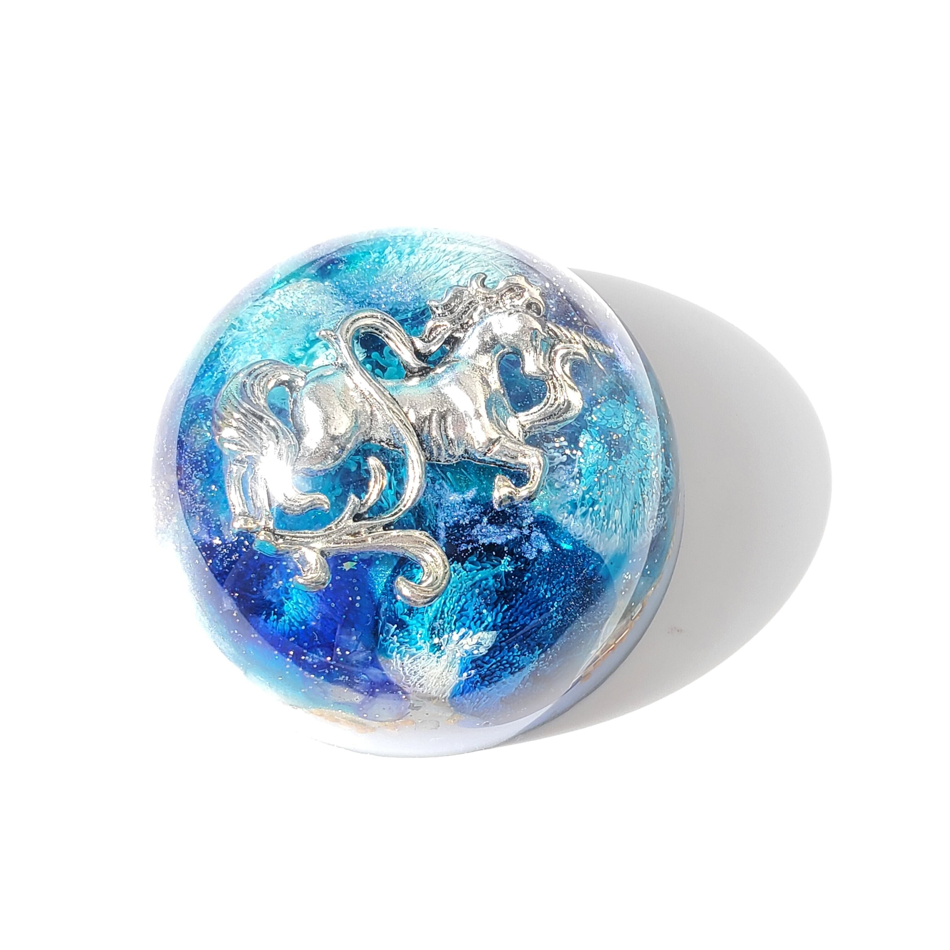 レジン、金属チャーム(銀のユニコーン)、与那国島の砂
