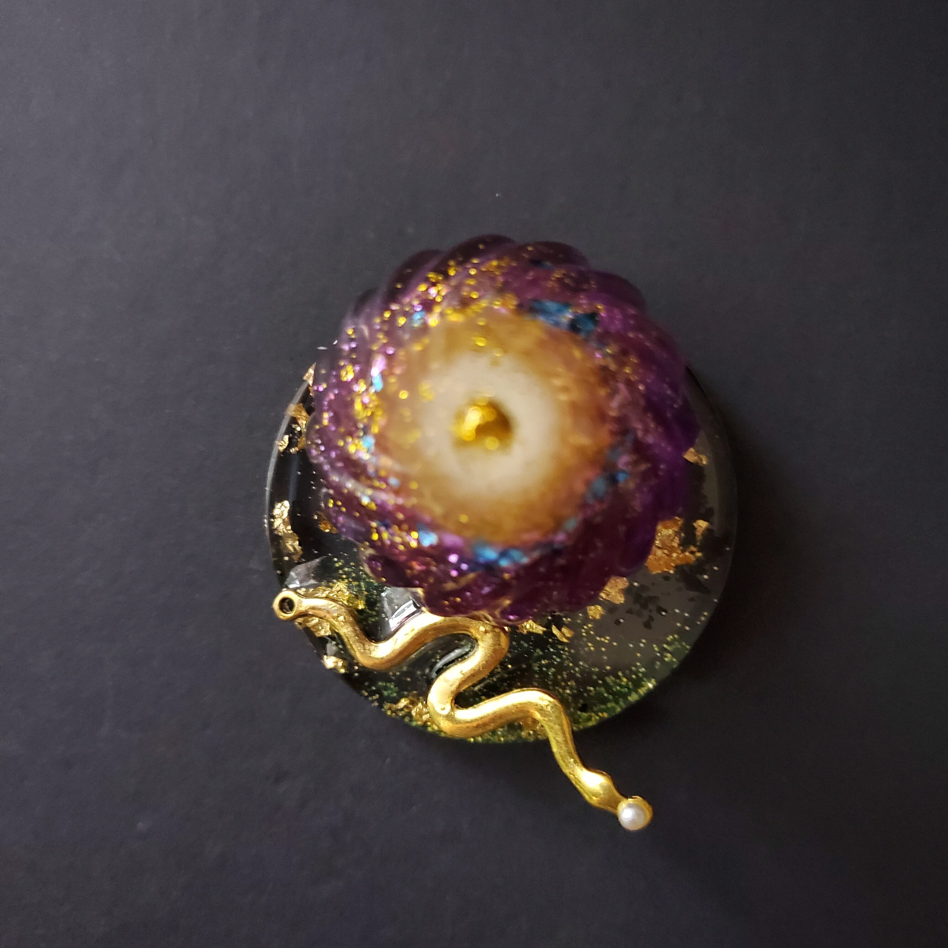 【宝珠オルゴナイト&蛇モチーフの台座付き】