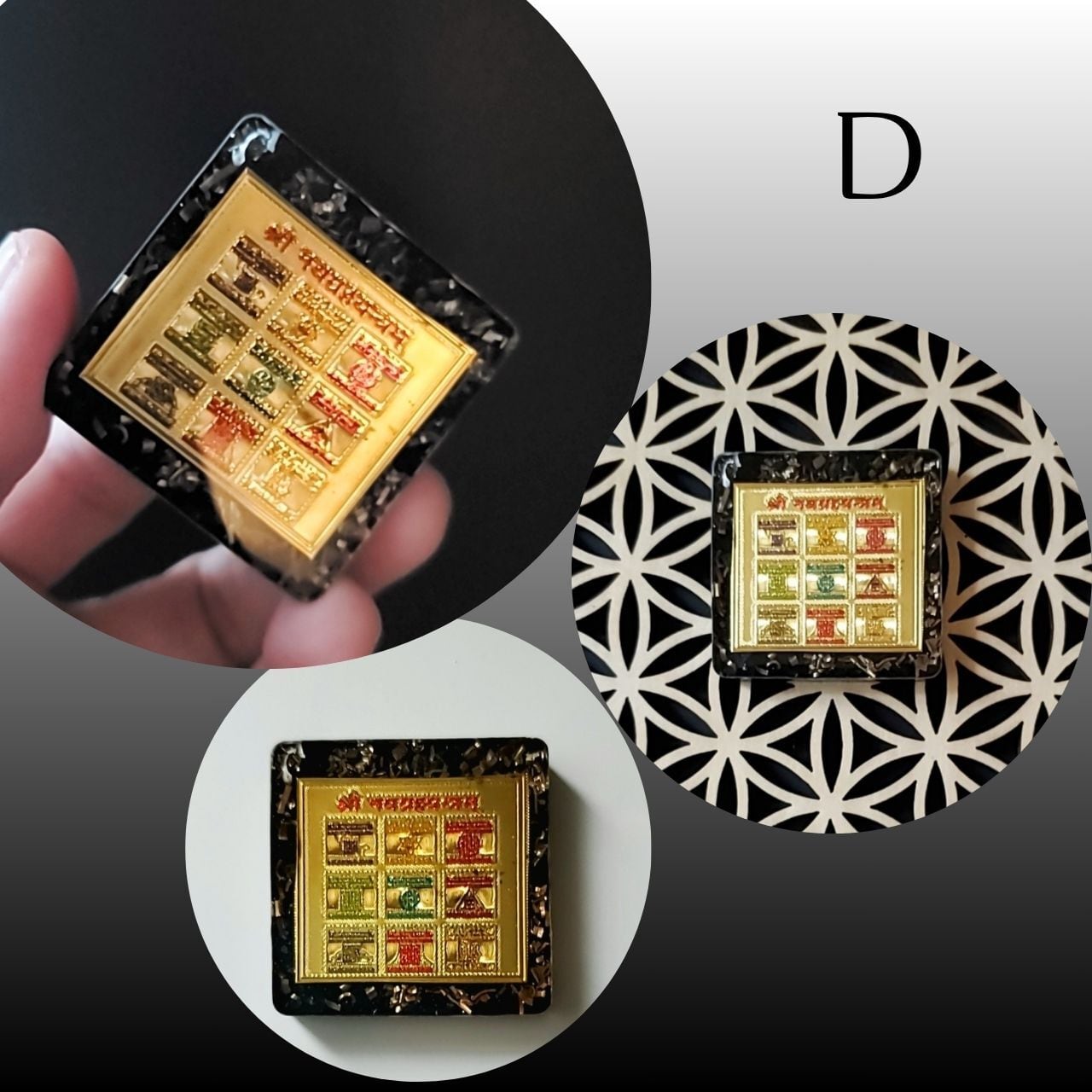 東洋の神聖幾何学とされるヤントラを封入。意識を整え、望む現実を引き寄せるサポートとして機能します。願いに合わせてお好きなヤントラをお選びください。