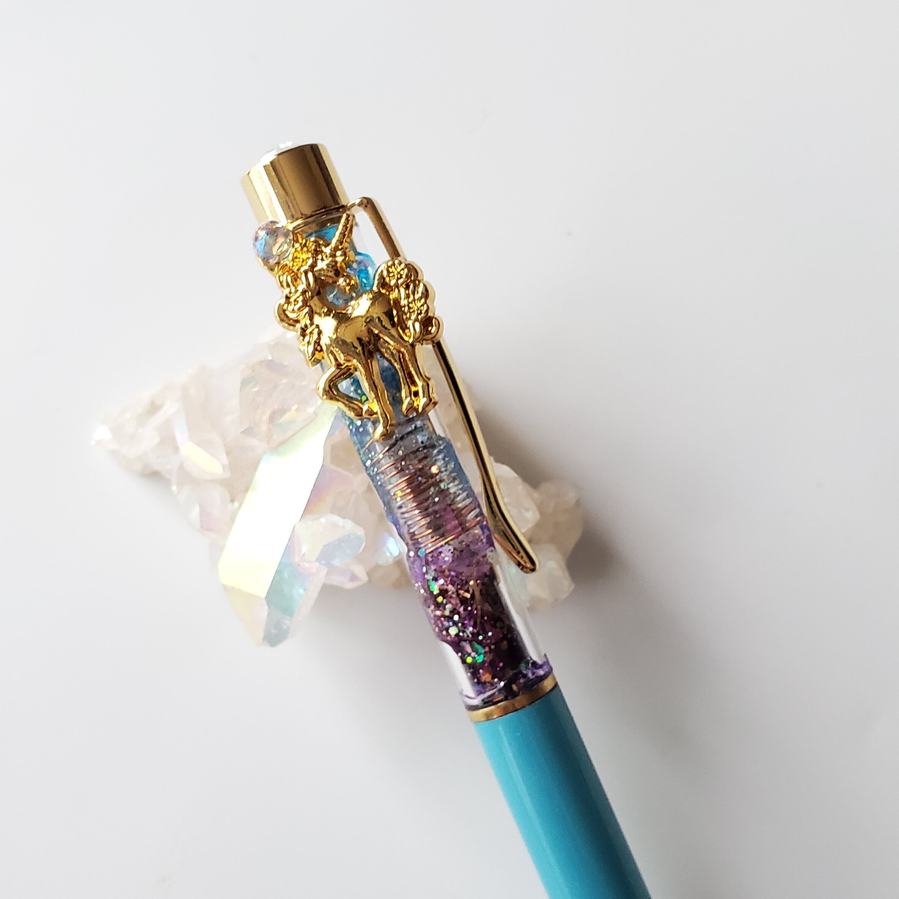 オルゴナイトでボールペンを制作しました。中身にもこだわりポイント水晶の銅線巻き、金属モール、パワフルなヒマラヤ水晶もぎっしり詰まっております。