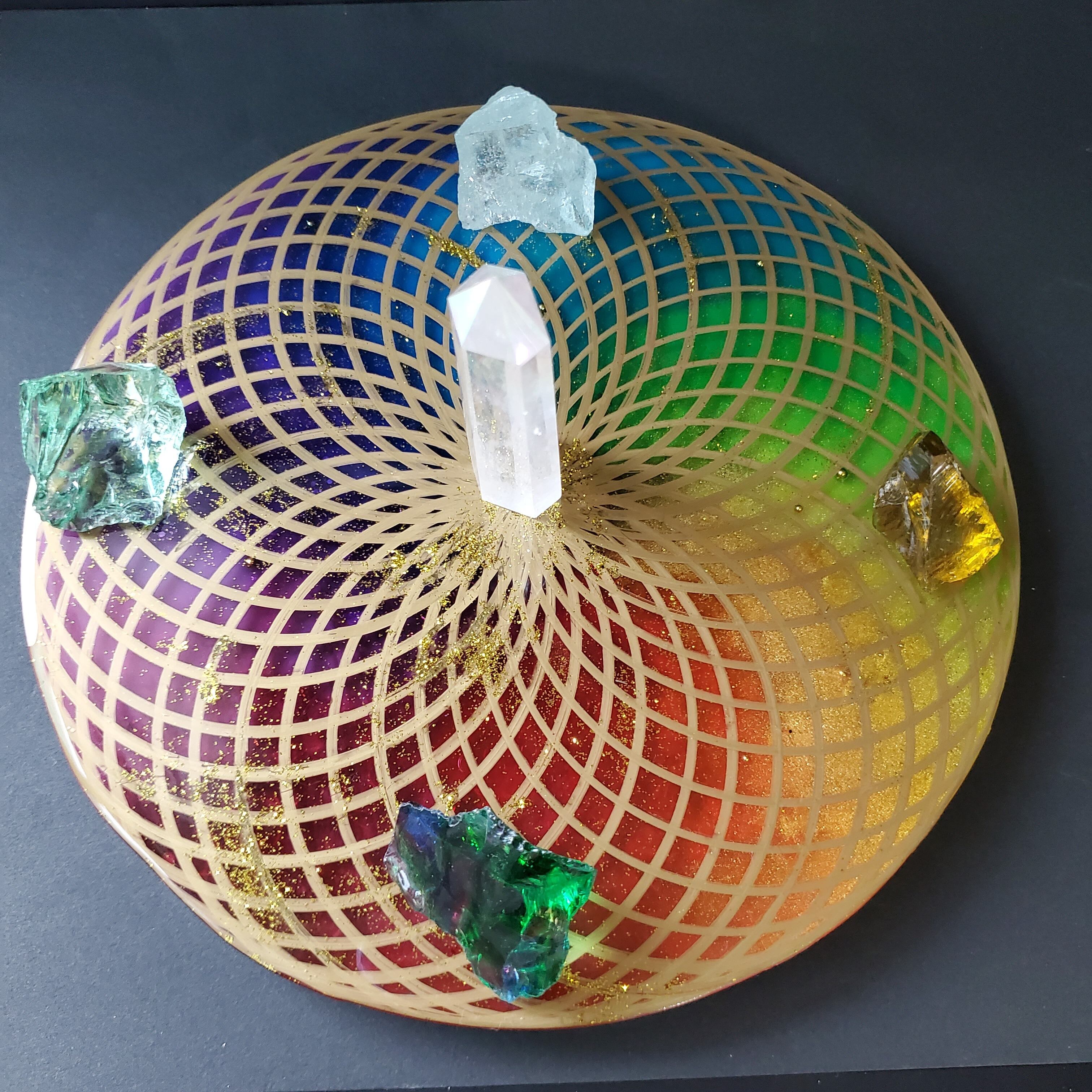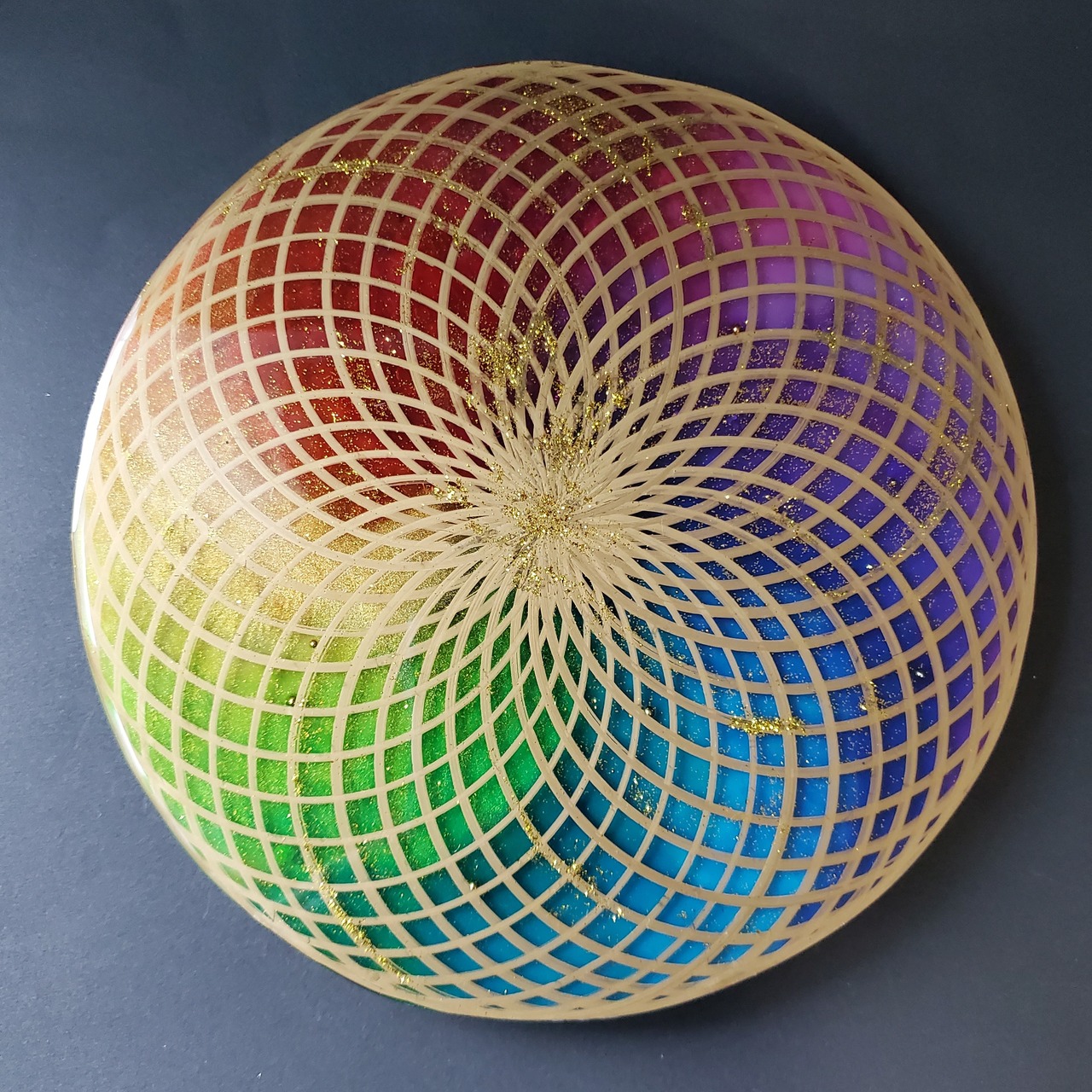 16色の虹をトーラス構造で表現した、特別仕様のプレート型オルゴナイトです。