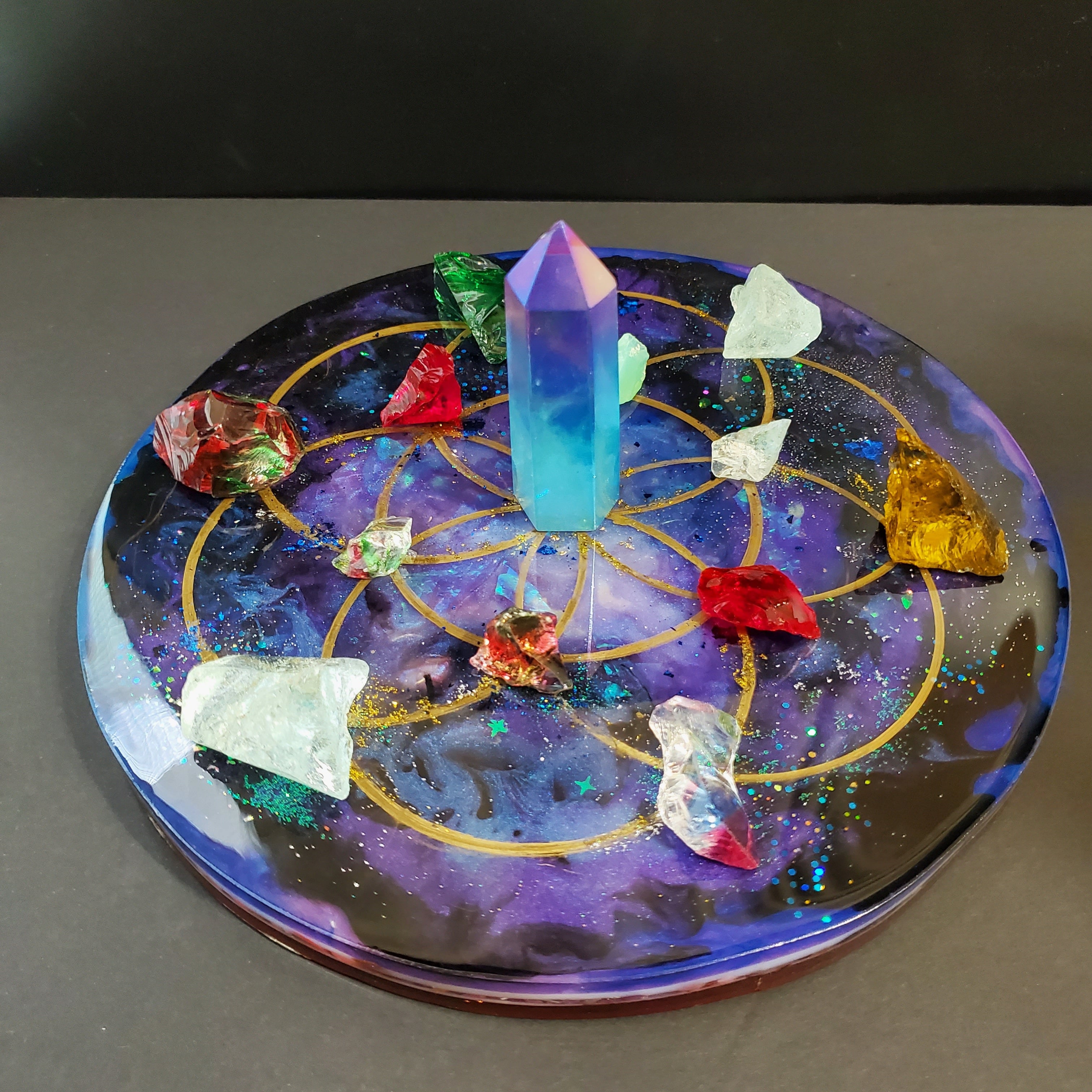 ・クリスタルやオルゴナイトを使いプレート上でグリッドを作り、パワフルな相乗効果をもたらす