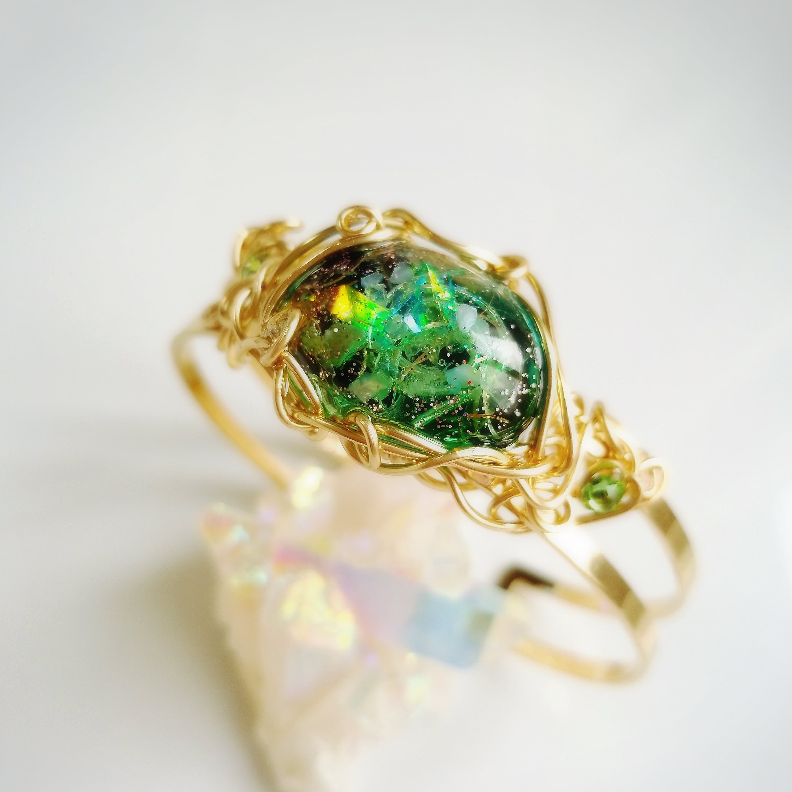 ハートの真実と繋がるエメラルドグリーンのオルゴナイト・バングル フリーサイズです。ハートの真実とつながり自分らしく進んでいきましょう。いつでもハート(自分)とつながり楽しんでいきましょう。視野が広がり新しいアイディアや解決策をもたらすでしょう。