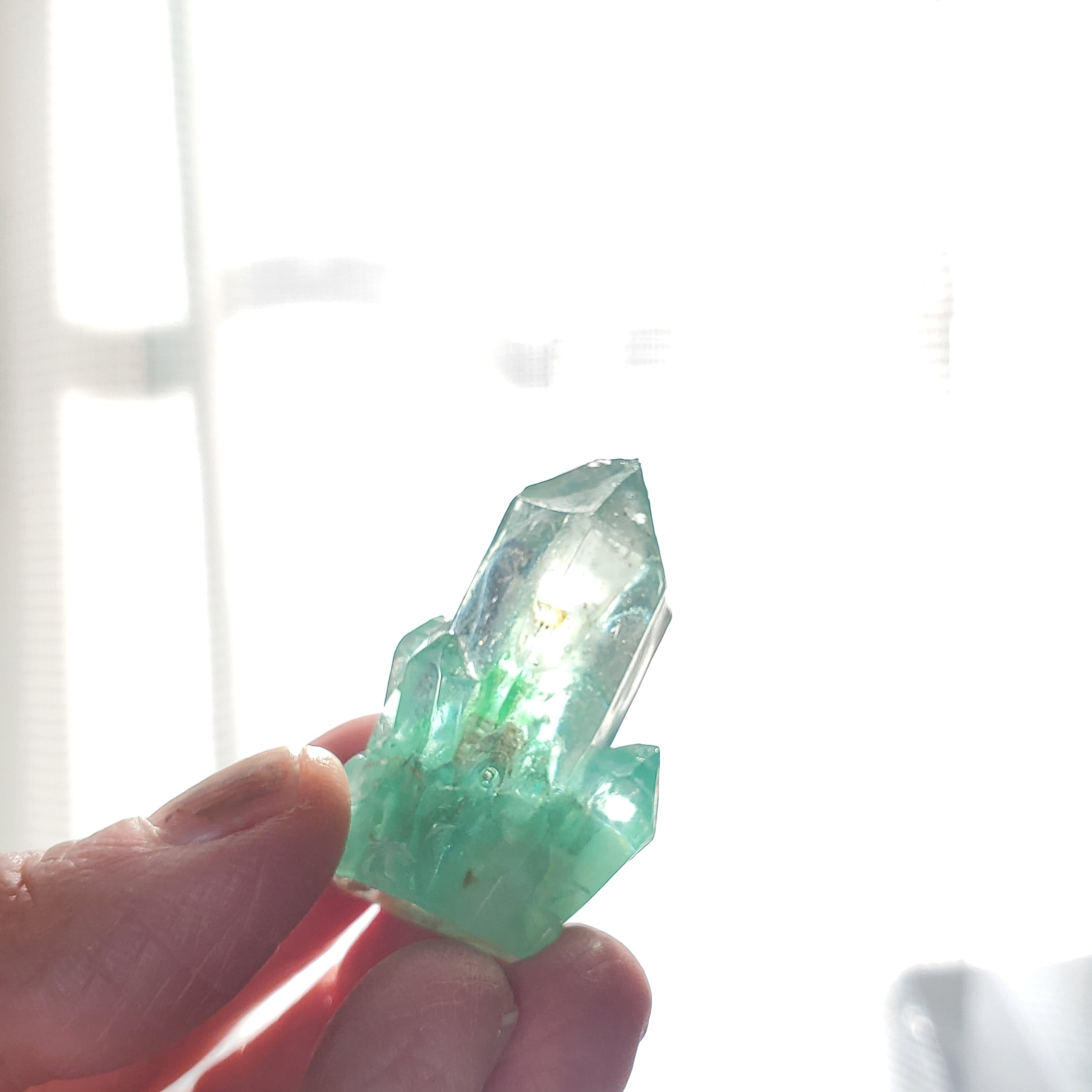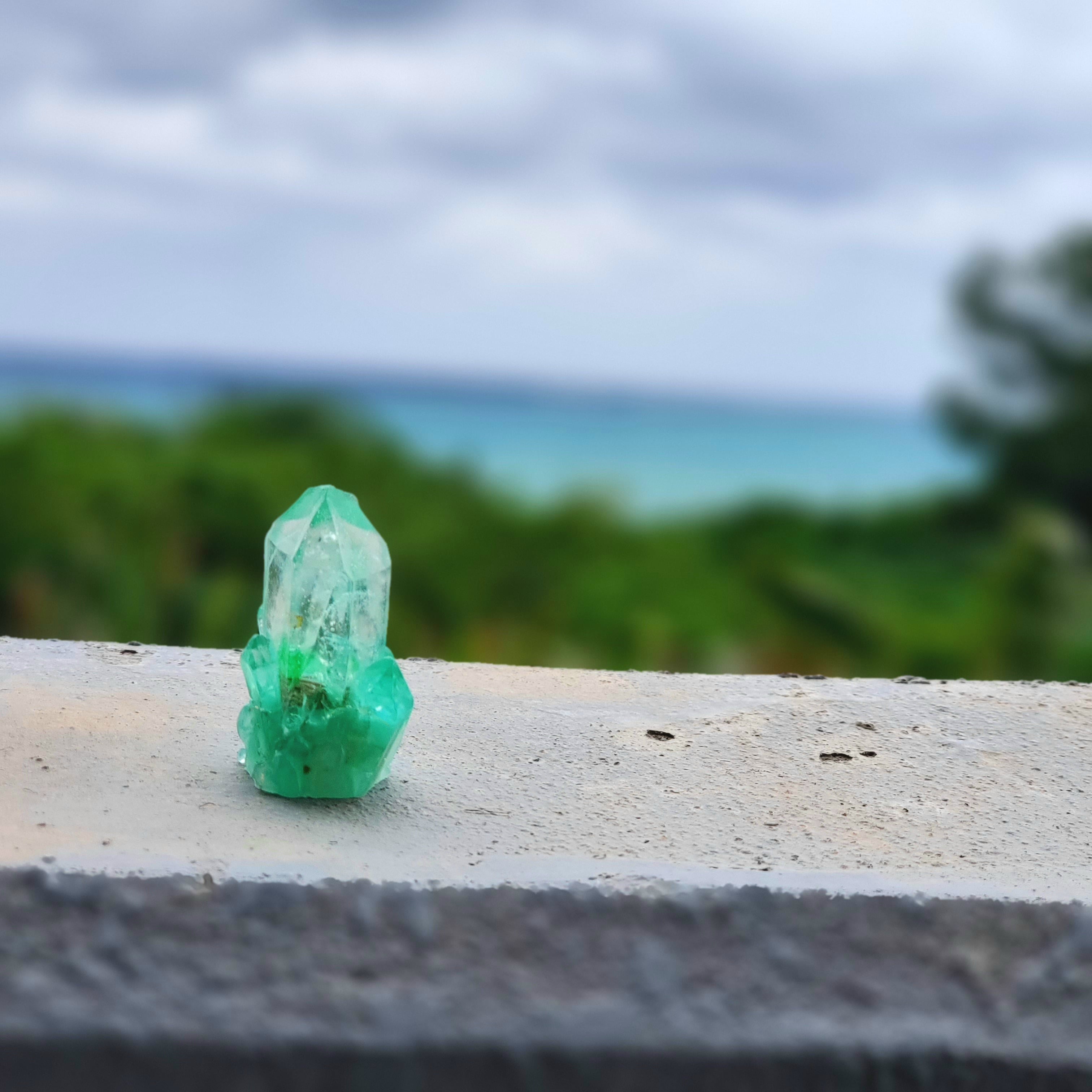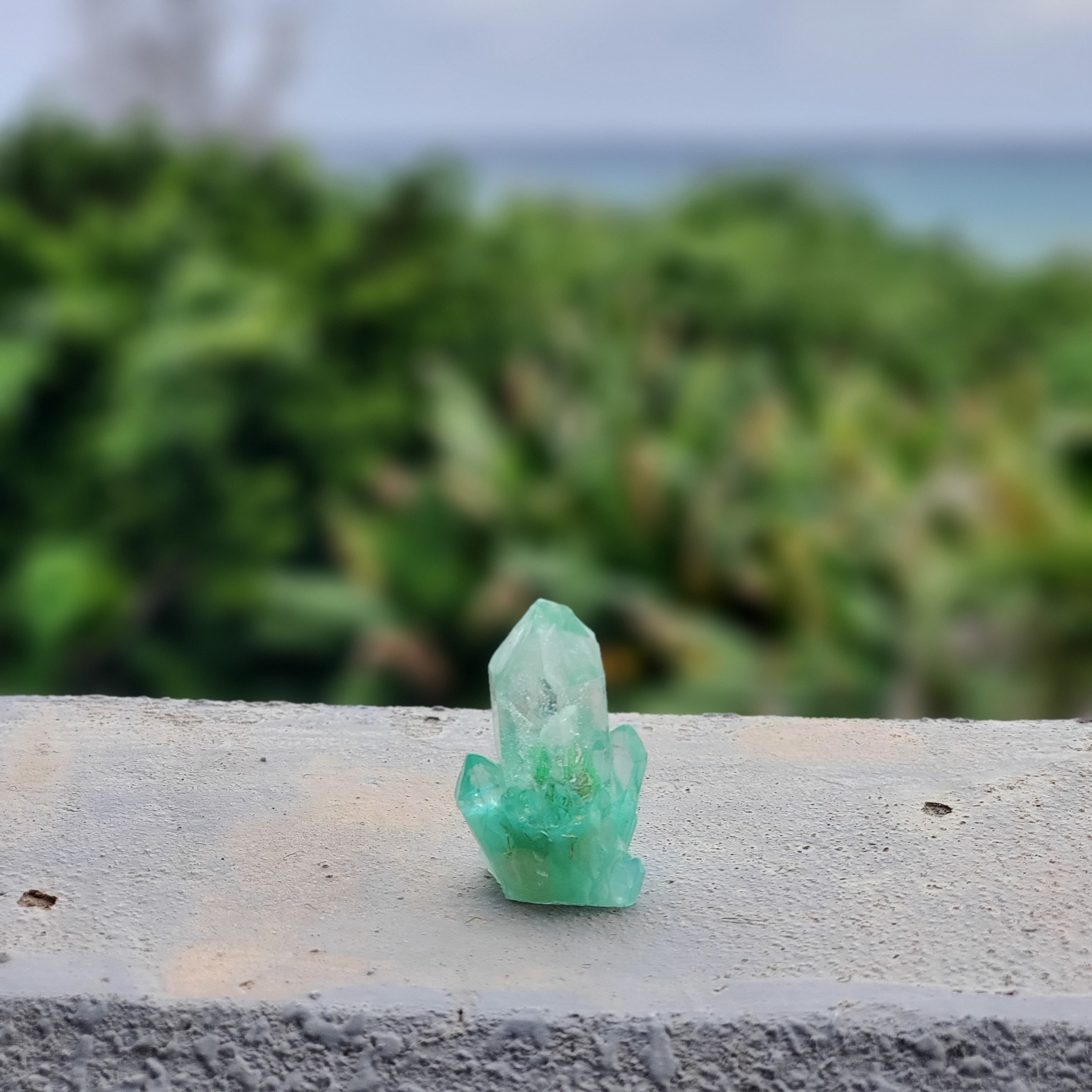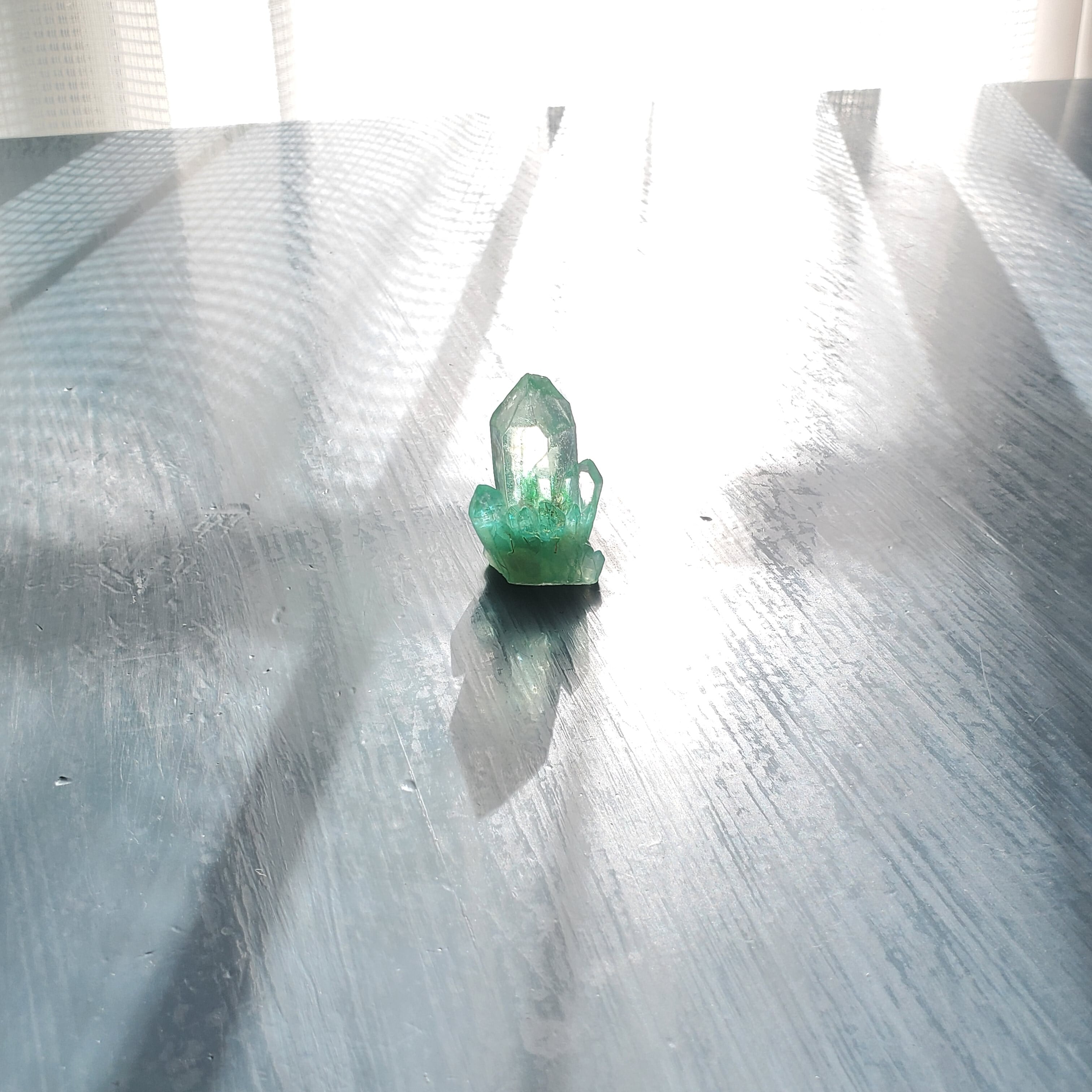 エメラルドグリーンのオルゴナイトを眺めていると、胸のあたりがふっと広がり、呼吸が深くなるのを感じます。