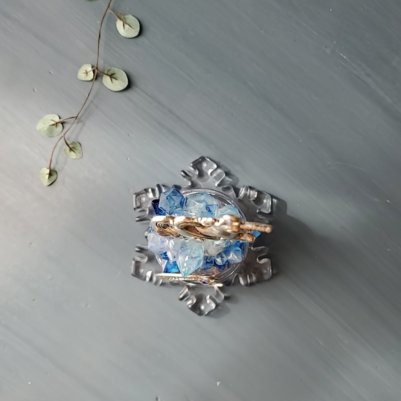 ガラスの台座もオルゴナイトになっており月のモチーフを組み合わせています。