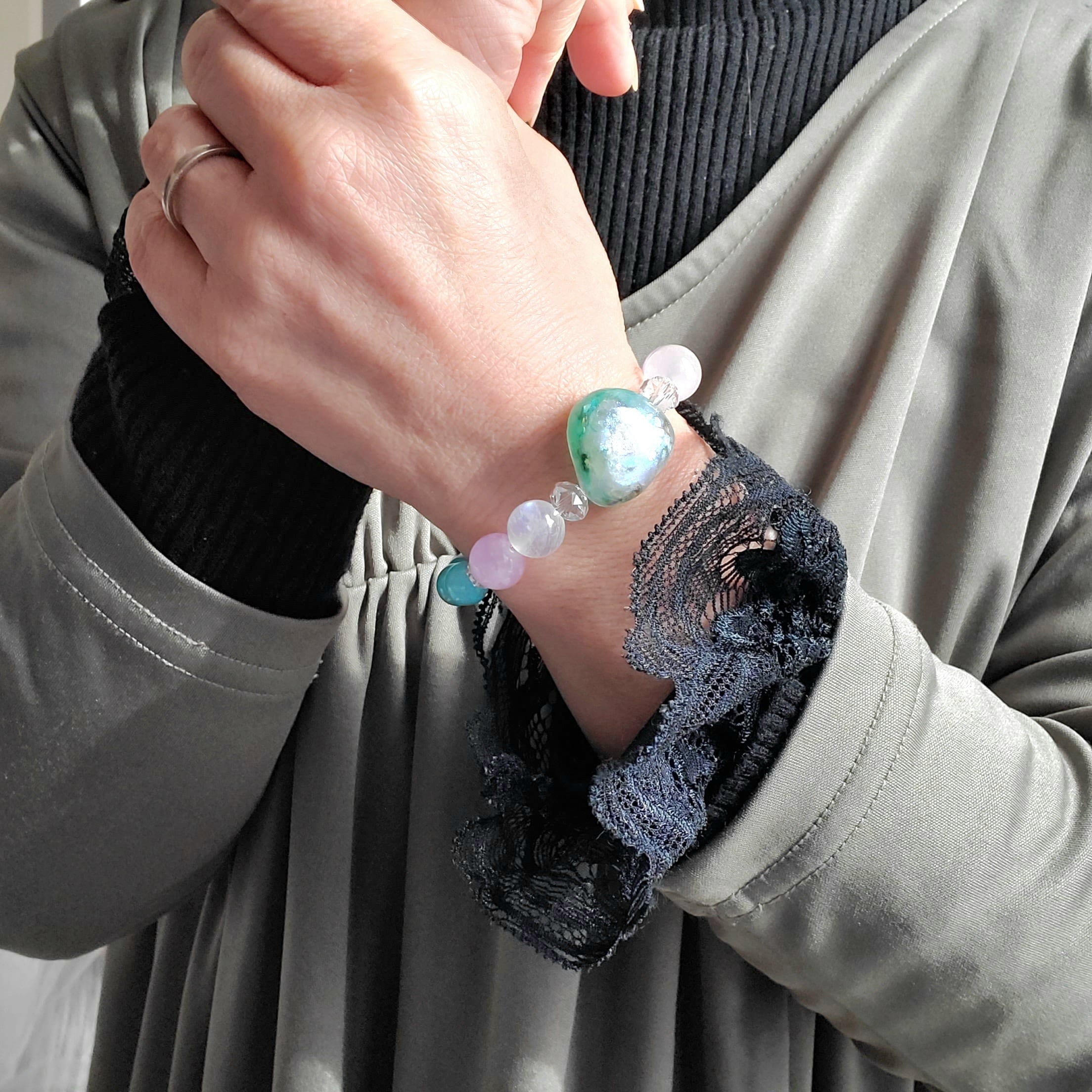 オルゴナイト珠と選りすぐりの天然石で紡ぎました。