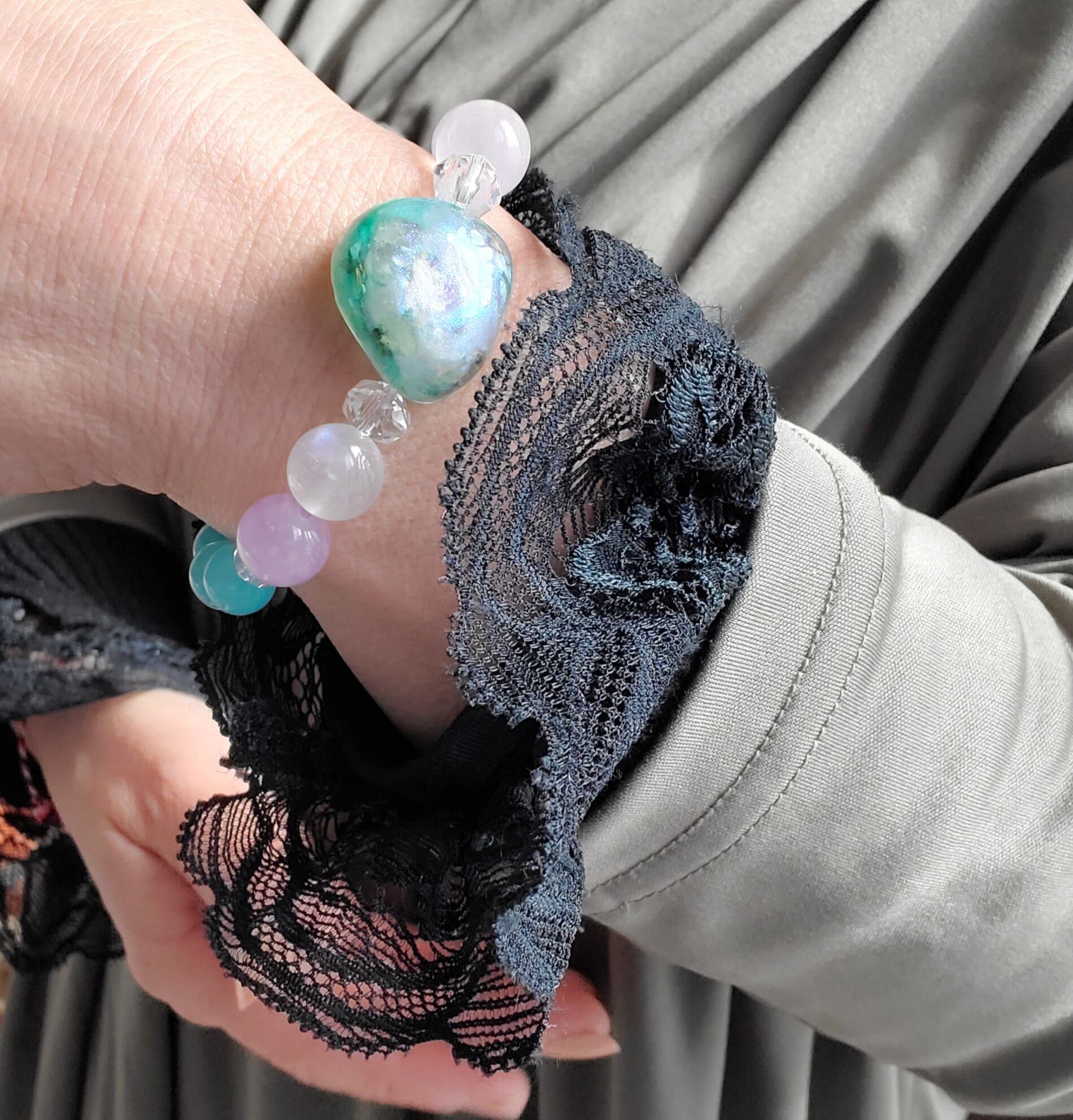 オルゴナイト珠/ブルームーンストーン/ラベンダ―アメジスト/水晶ボタンカット