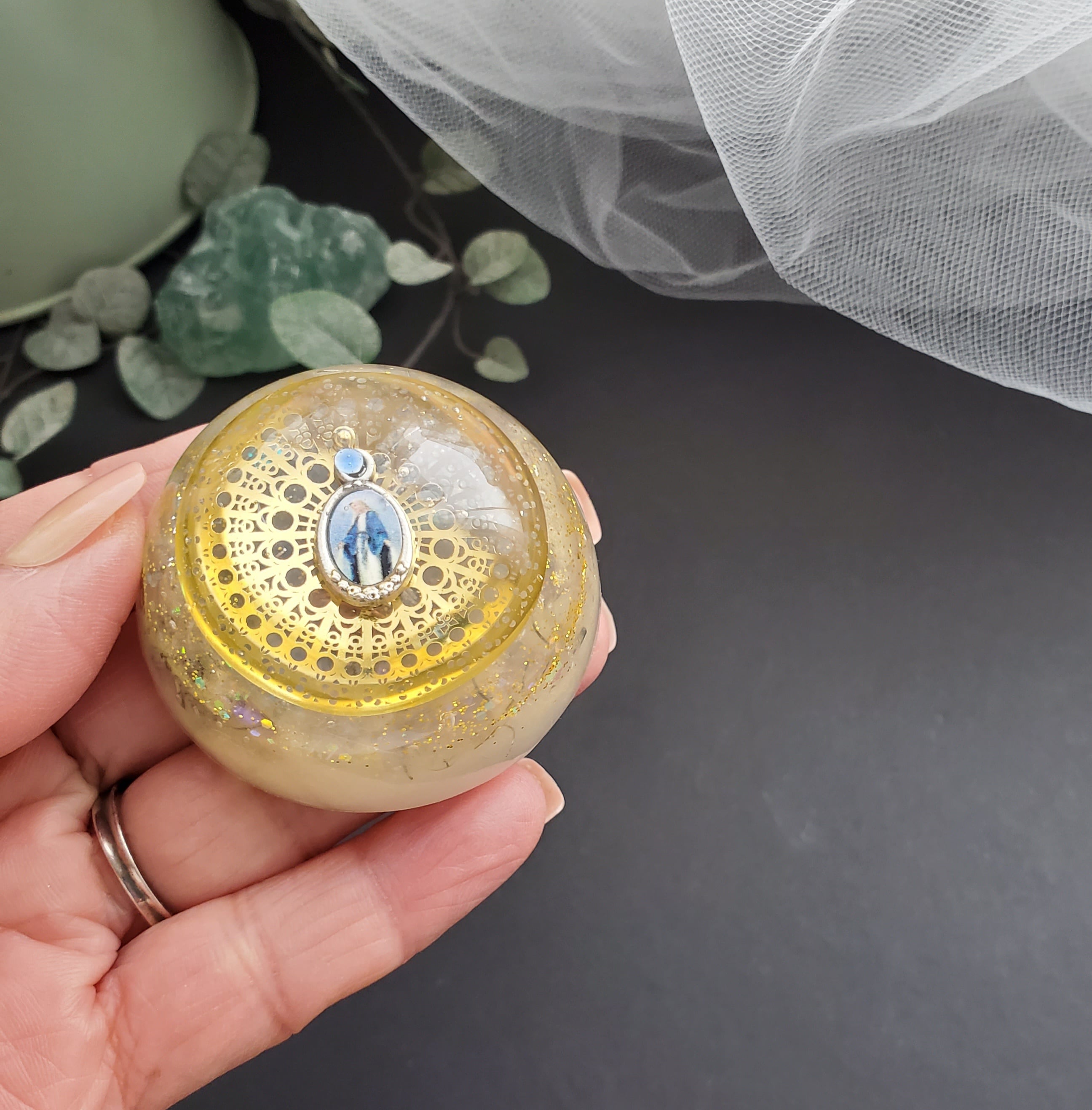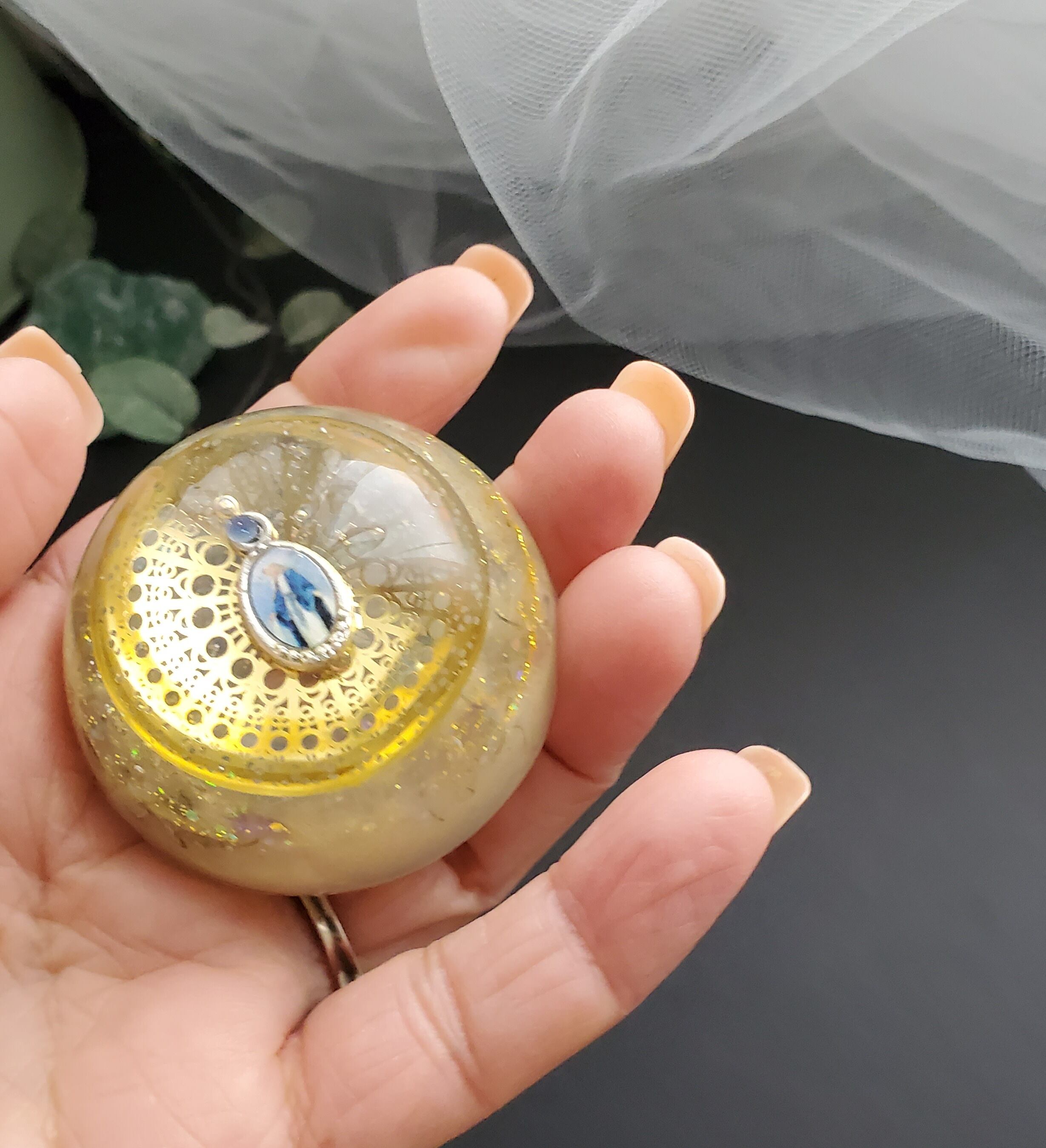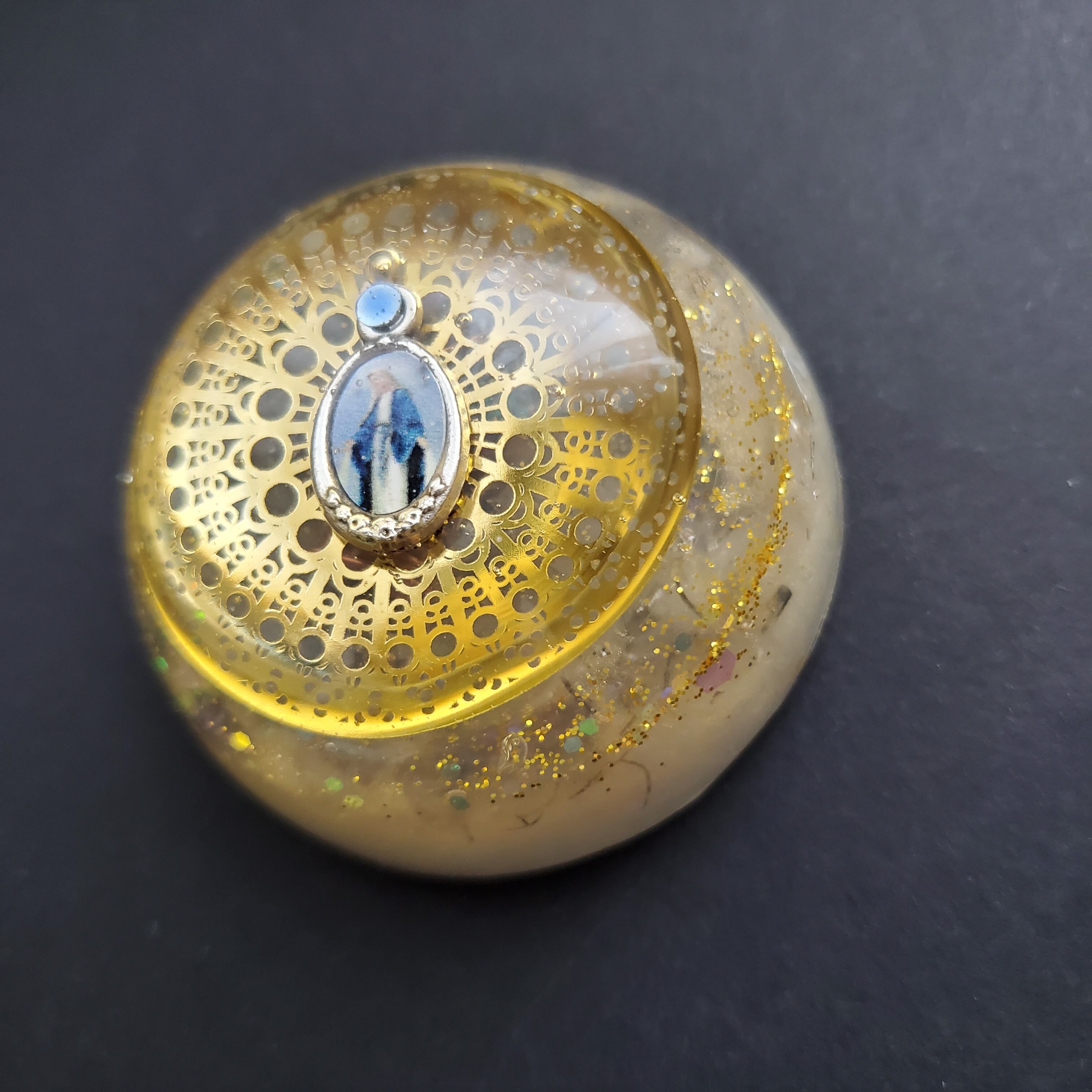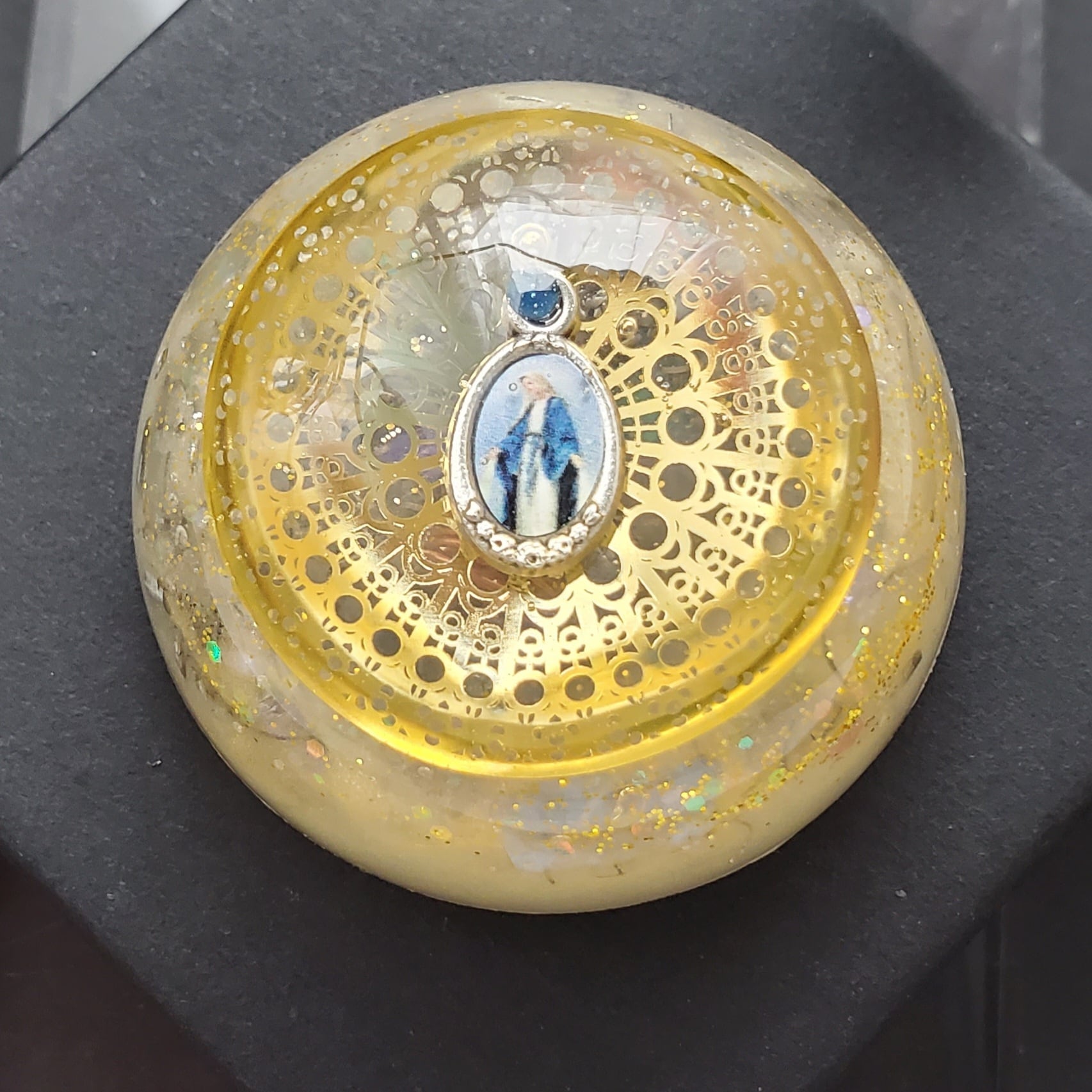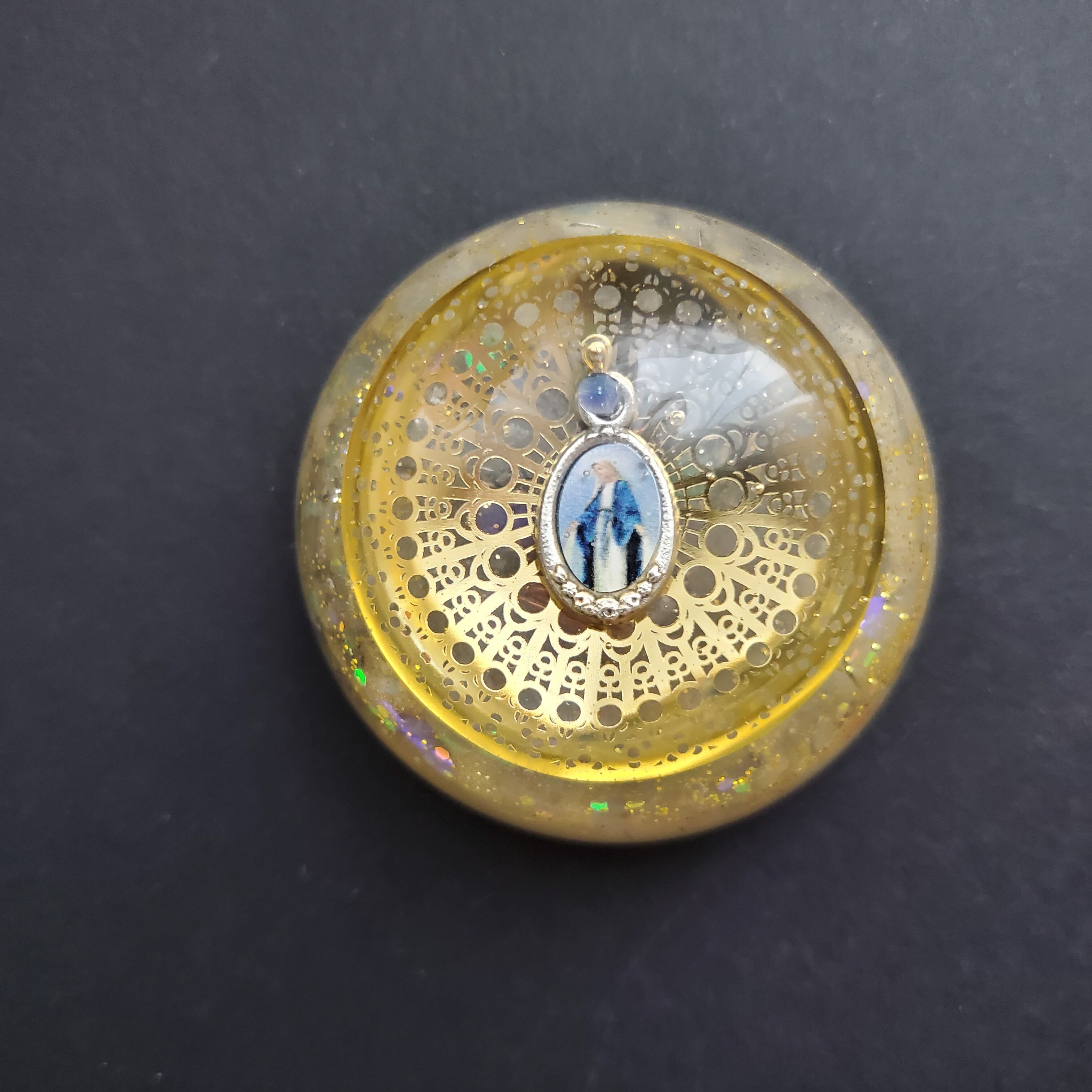 聖母マリア様の象徴であるバラ窓とメダイを組み合わせた、1点もののミニドームです。
