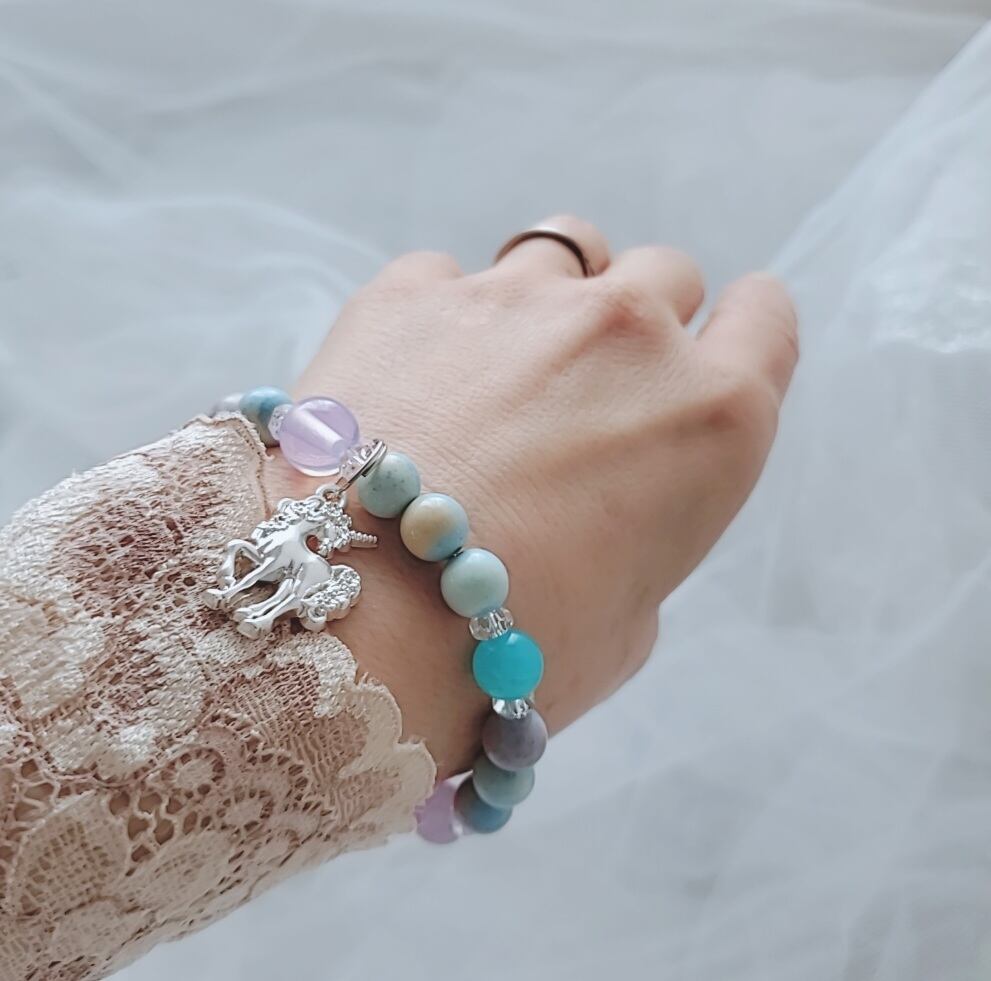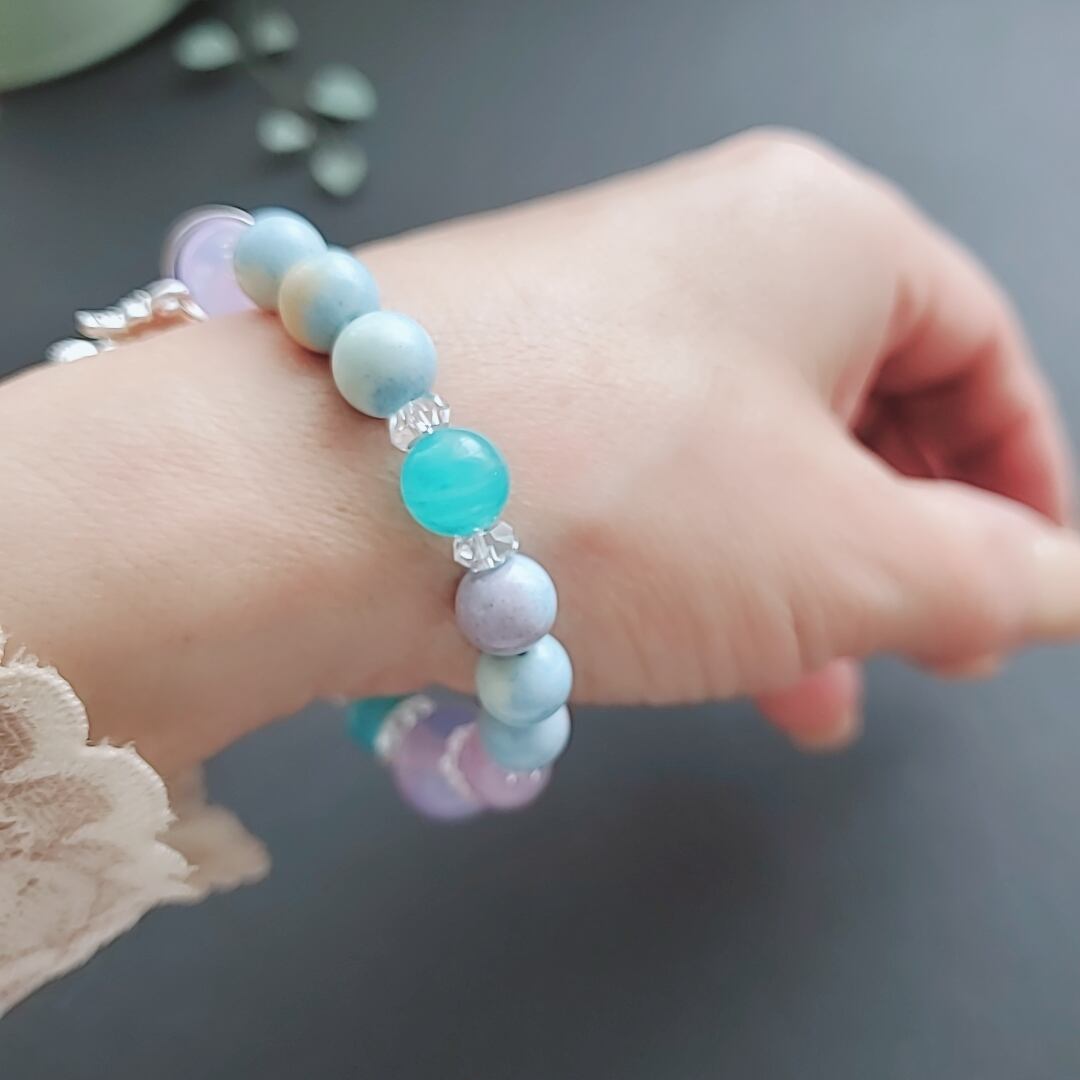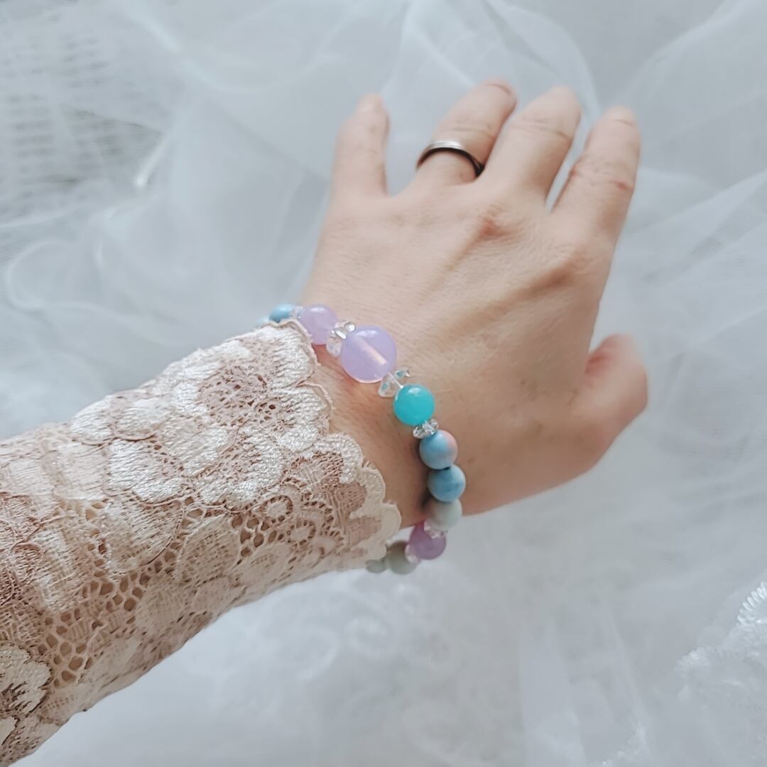 レムリアの愛と調和のエネルギーをテーマに、美しいクリスタルで紡いだブレスレットです。
