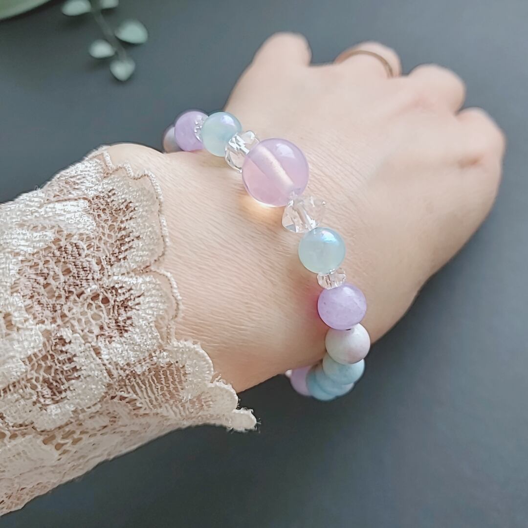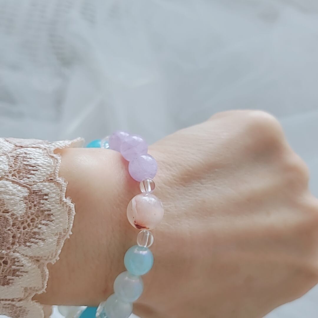レムリアの愛と調和のエネルギーをテーマに、美しいクリスタルで紡いだブレスレットです。