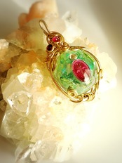 ハートチャクラのフォレストグリーンのオルゴナイトに神聖なる愛のマゼンタピンクのメダイです。優しく平和、調和を感じて過ごしたい方に。マリア様がお好きな方に。自分を受け入れられず自己否定している部分をプラスに変換していきます。
