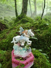 オルゴナイトの中に入っているムーンストーン(直観やイメージ力を高めます)やローズクォーツ(愛の石)を響かせながら美しいメロディが響きます。レムリアのユニコーンと妖精は平和や自由の象徴です。