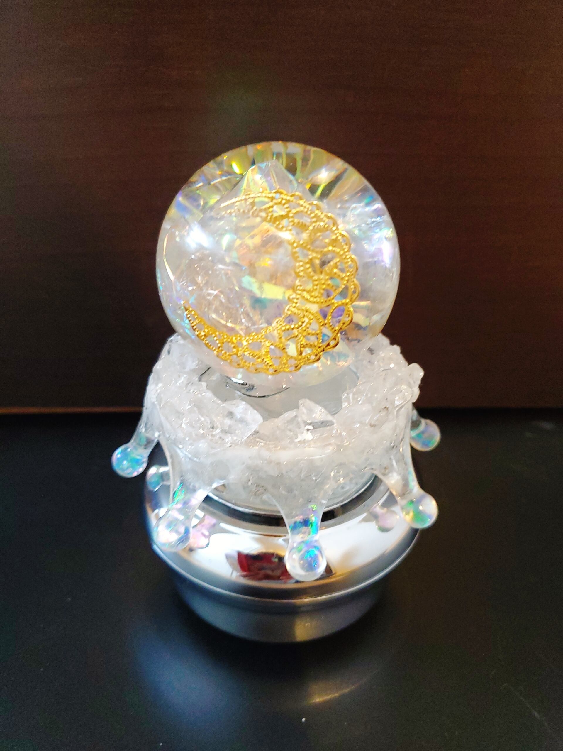 ストレスの多い世の中ですが 少しでも楽しくわくわくと夢見る未来や展望をもてますように癒しのまんまるの形で 魔法使いのメロディと共にこの作品を作りました。実現したいことや願い事をイメージしながらこのオルゴールを使ってください。見ているだけで気持ちが安らぎ あなたのモチベーションがアップしますように願っています。