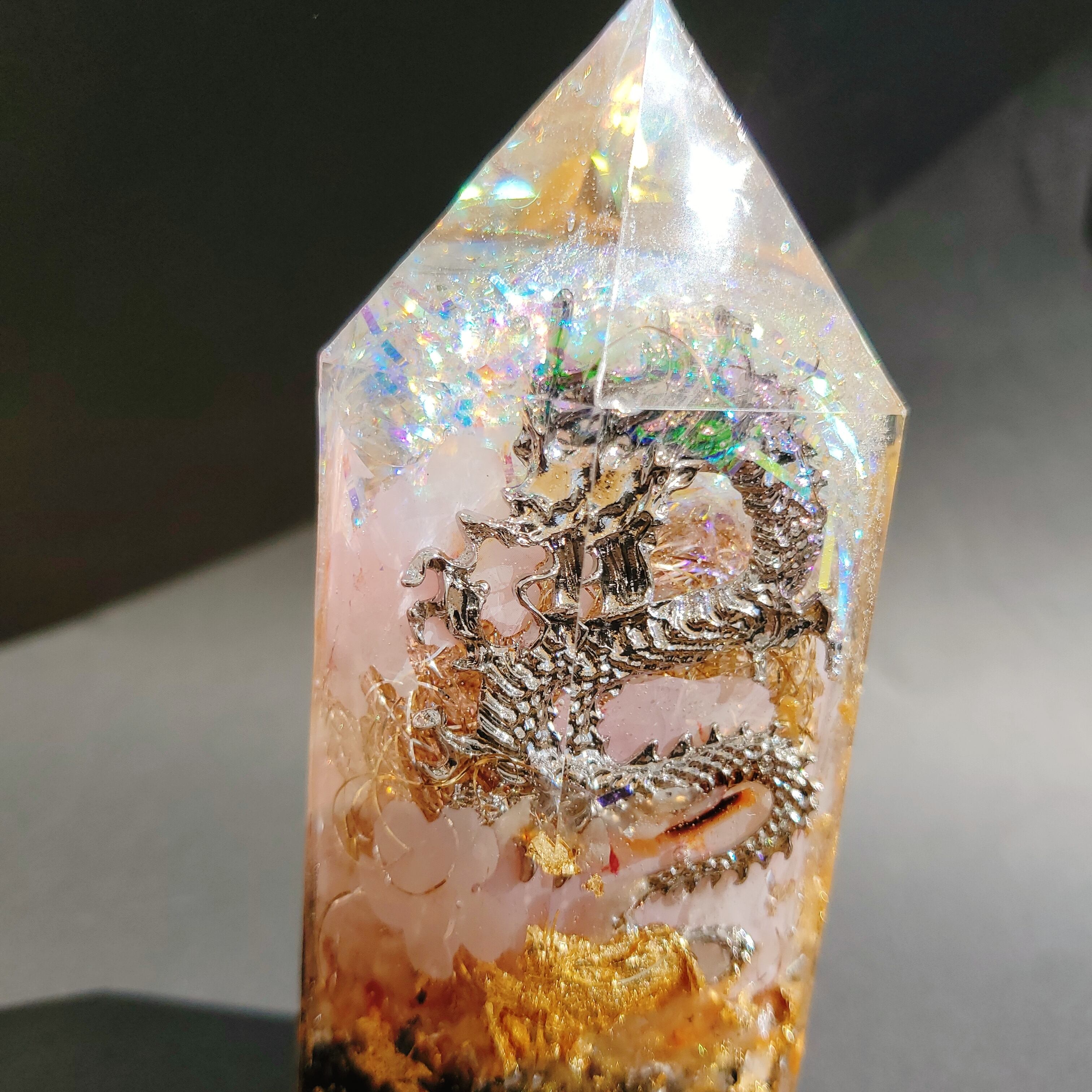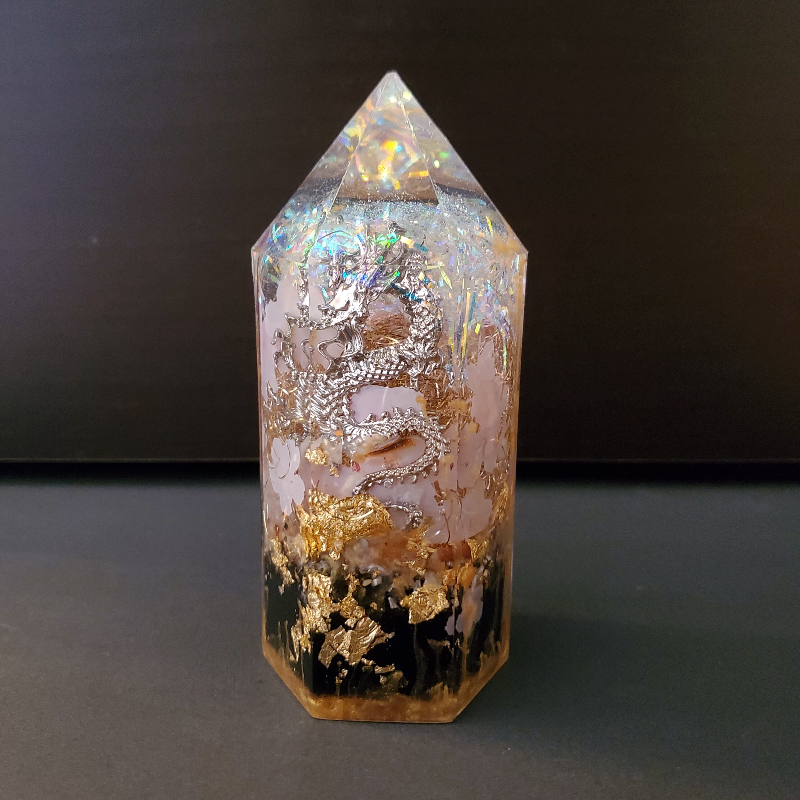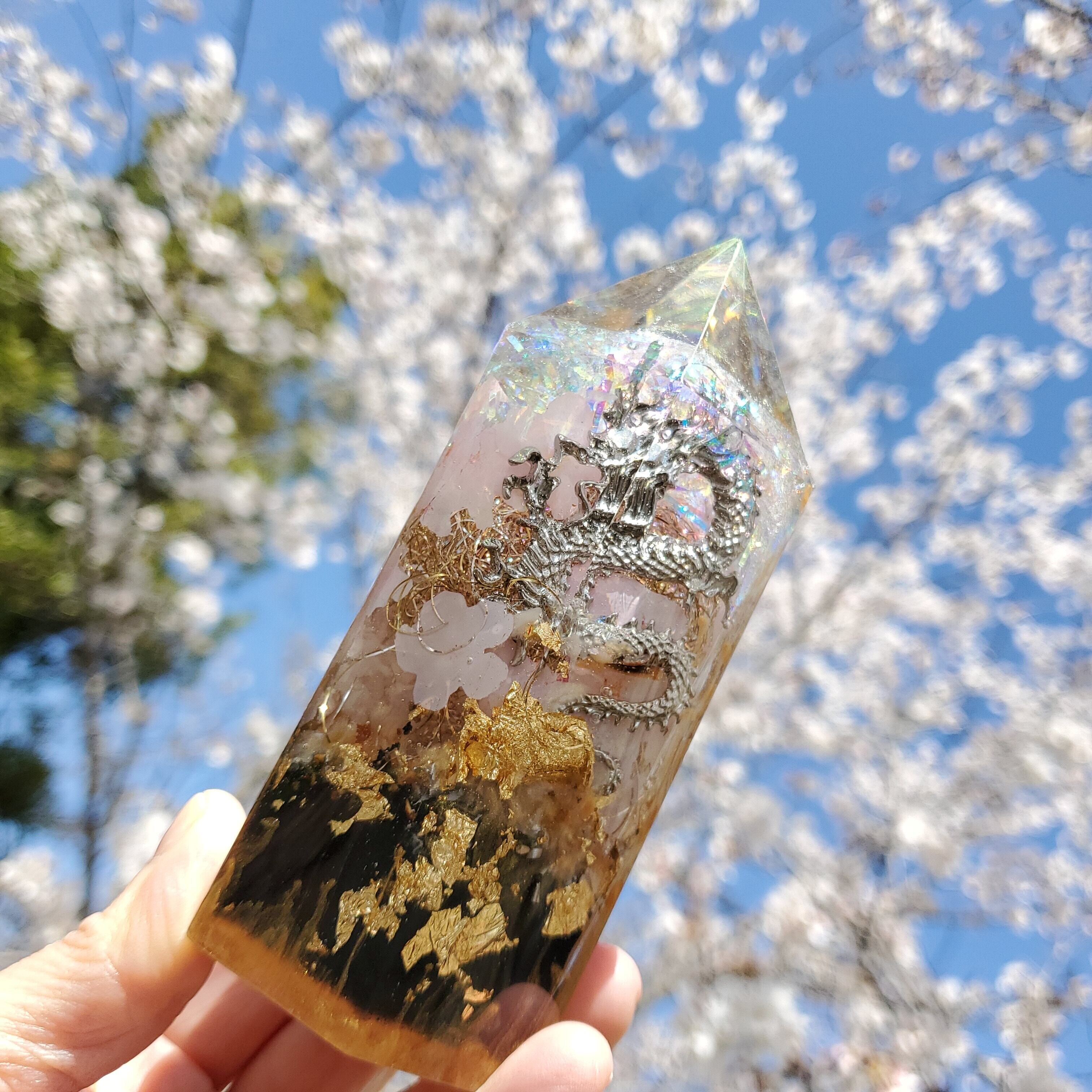 コノハナサクヤヒメ銀龍のポイントオルゴナイト。テーマは「桜と龍神と金箔と黄金の蜜」