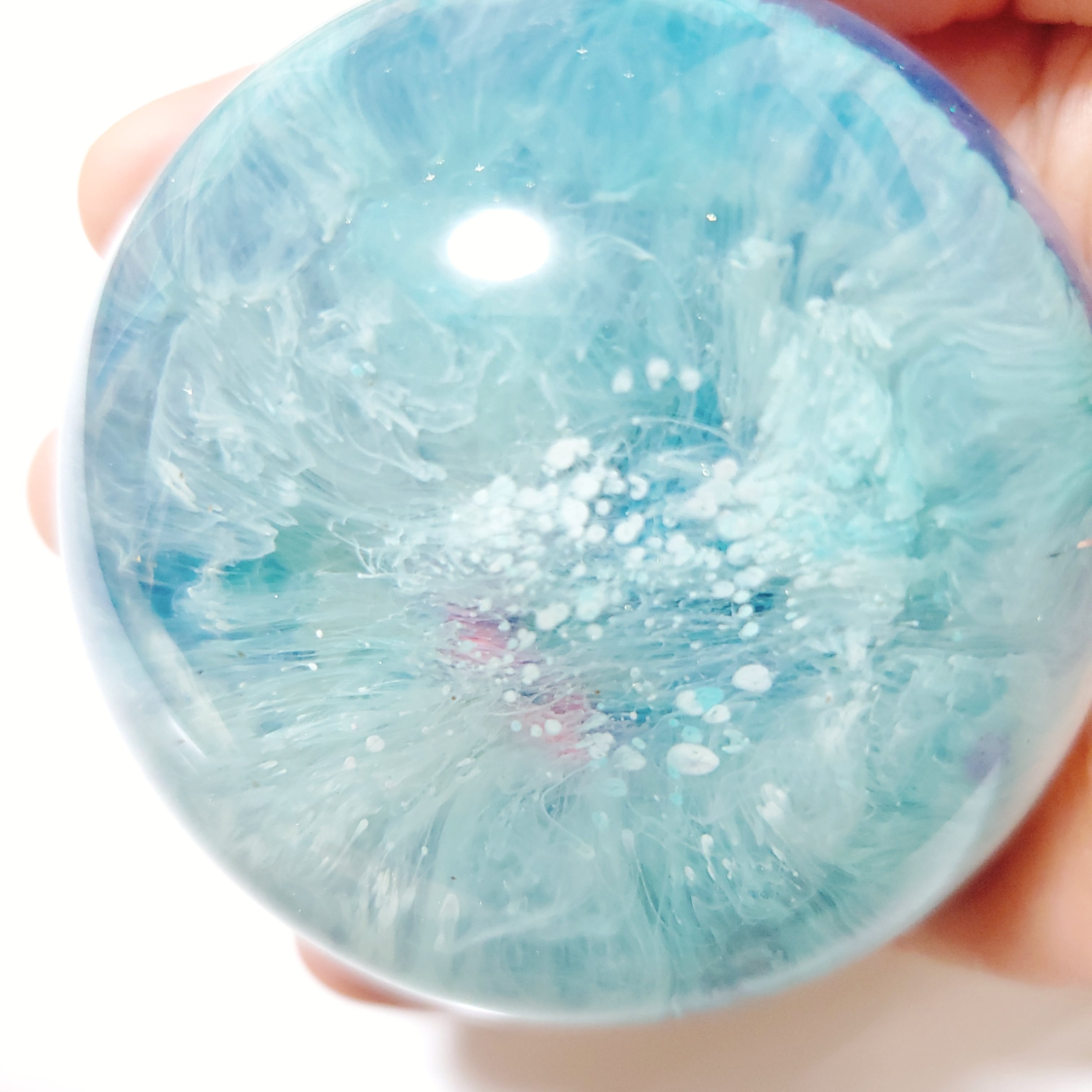 もう二度と同じものは作れないので唯一無二の作品の一つになりました。優しい優しい調和の愛の世界レムリアをイメージして作りました。見ているだけで緊張していたりキュッとなっていた心がほどけていきます。あなたの安心安定のお供に癒しのオルゴナイトはいかがですか?